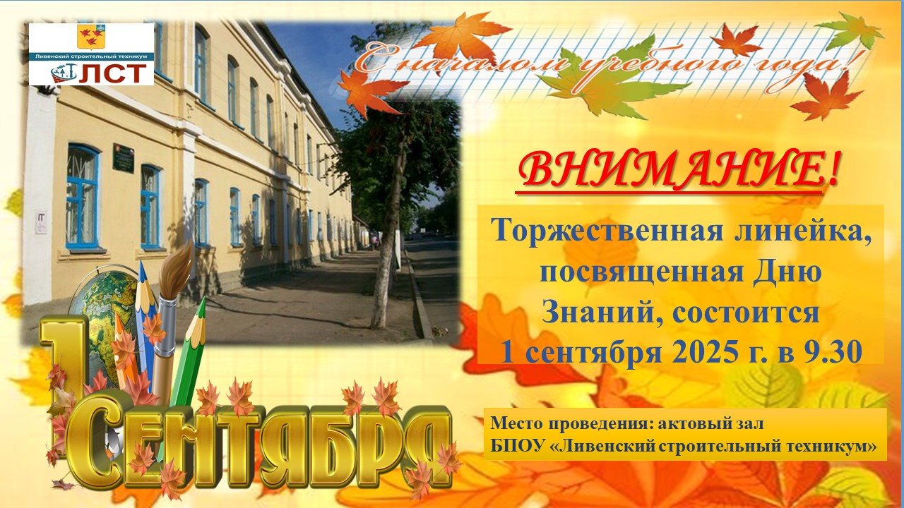 ПРИЕМНАЯ КОМИССИЯ БПОУ ОО «ЛИВЕНСКИЙ СТРОИТЕЛЬНЫЙ ТЕХНИКУМ» ОБЪЯВЛЯЕТ ПРИЁМ АБИТУРИЕНТОВ НА 2025-2026 УЧЕБНЫЙ ГОД.